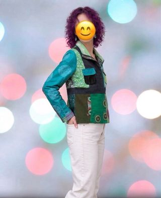 Chaqueta con un diseño único y llamativo. Aunque es una L, es muy justa. Más bien una M. Puedes ver las medidas en las fotos - Estilo patchwork. - Combinación de colores vibrantes. - Cierre de botones. - Bolsillos frontales.