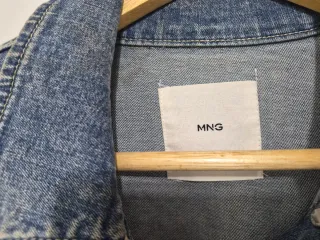 Chaqueta vaquera de la marca Mango. - Cierre de corchetes, simulando botones con hojal, más fácil para manejar - Dos bolsillos en el pecho, dos laterales y dos interiores. Tiene algo de elastán, así que un poco elástica, más cómoda . Cintura ajustable dos posiciones. Higienizada con lavado al vapor. No está planchada.