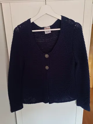 Chaqueta punto talla L. Nueva a estrenar, nunca usada, sin bolas. Estilo ch4NNel. - Ribete en contraste en cuello, puños y bolsillos. - Cierre de botones dorados. - Dos bolsillos de parche en la parte delantera.