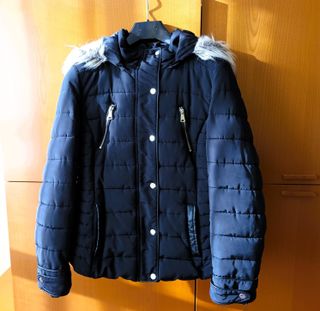 Chaqueta acolchada de invierno con capucha. - Diseño brillante. - Cierre de cremallera frontal. - Dos bolsillos laterales. - no se usó nunca - con etiqueta