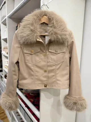 Chaqueta beige con cuello de pelo