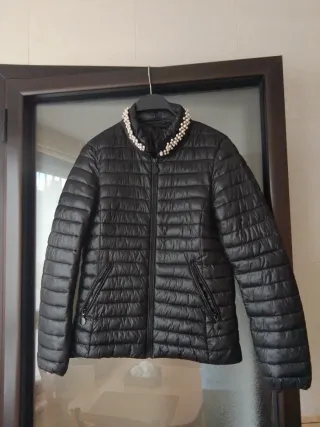 Chaqueta acolchada con un diseño moderno y elegante, perfecta para añadir un toque especial a tu look. - Cuello adornado con perlas. - Cierre de cremallera frontal. - Bolsillos laterales con cremallera. - Medidas aproximadas: de axila a axila 47cm, largo 58cm