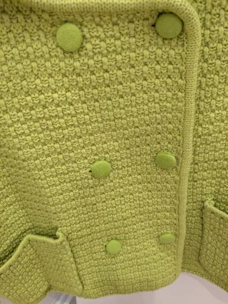 Puesta en una sola ocasión. Chaqueta de punto con un llamativo color verde lima y un diseño texturizado. - Cierre de doble botonadura. - Bolsillos delanteros. - Cuello solapa.