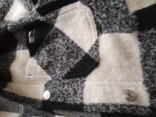 Chaqueta de cuadros estilo invierno. - Diseño a cuadros en blanco y negro. - Tejido suave y cálido.