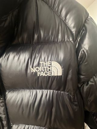 Chaqueta de plumífero de la marca The North Face en color negro. Diseño acolchado y cálido. - Cremallera frontal. - Bolsillos laterales con cremallera. - Entallada. Lleva tela en los laterales - Máxima calidad se plumón (800) Tiene dos pequeños agujeros en la parte delantera