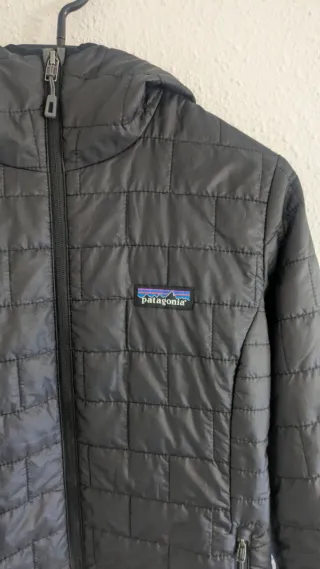 Chaqueta acolchada Patagonia Nano Puff con capucha en color negro. Diseño ultraligero y cálido. Comprada en tienda oficial Patagonia. - Cremallera frontal completa. - Bolsillos laterales con cremallera. - Capuche.