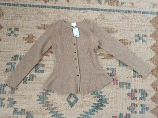 Chaqueta de punto péplum color beige talla S de H&M. - Tejido suave y cómodo. - Cierre de botones. - Corte acampanado en la parte inferior.