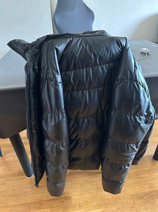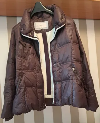 Chaqueta acolchada con un diseño moderno y elegante. Perfecta para añadir una capa extra de abrigo. Cierre de cremallera frontal. Bolsillos laterales con cremallera. Uno de ellos está mal. La talla indica una 50 pero equivale a una L. Es muy ligera y ponible. Ancho de axila a axila 54 cm.