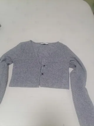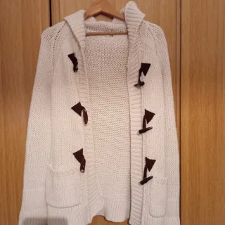 Chaqueta de punto abierta, ideal para añadir una capa extra a tu atuendo. - Diseño de punto grueso. - Dos bolsillos delanteros. - Manga larga. Talla S, pero es holgada, vale también,M/L. Súper bonita,nueva a estrenar.