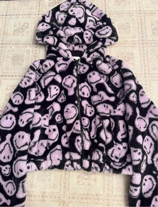 Chaqueta de tacto suave con un divertido estampado de caras. - Diseño con capucha. - Cierre de cremallera frontal. - Mangas largas.