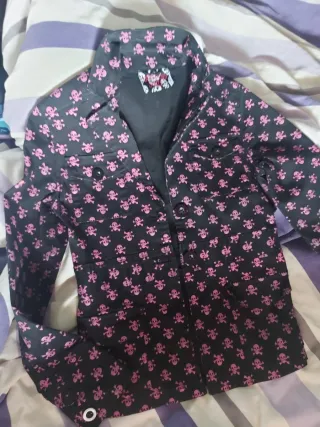 Chaqueta negra con calaveras rosas. Gótico.
