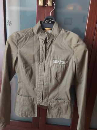 Chaqueta como nueva con coderas. Usada un par de veces como mucho, está nueva. Tiene dos bolsillos. Talla 40 pero queda como una S-M Medidas: Hombros 40 Cintura 85 Largo 68 Manga 60
