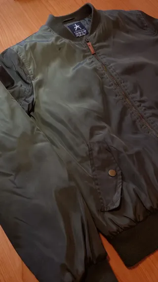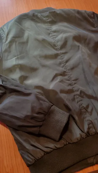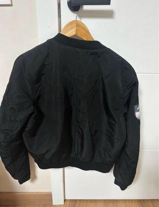 Chaqueta estilo bomber. Queda a la altura de la cintura. Sus medidas son: Pecho (de axilas): 55cm Cintura: 50cm Cadera 40cm Alto (de hombro a cadera): 60cm Manga (de muñeca a hombro): 61cm Espalda (de hombros): 40cm