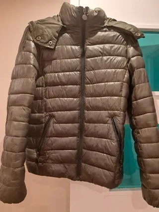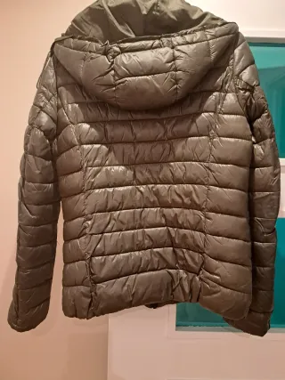 Chaqueta acolchada con capucha, ideal para el frío. - Cierre de cremallera. - Bolsillos laterales con cremallera. - Puños elásticos.