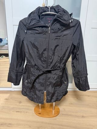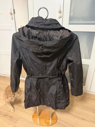 Cortavientos super fino, a cuadros negro y verde oscuro (e intentado que se aprecie en las fotos pero hay alguna que se ve más claro, es verde oscuro). Tiene una cremallera del pecho al cuello, con capucha la cual se puede ajustar, al igual que la parte de abajo. Las mangas acaban en puños y tiene dos bolsillos. Sus medidas son: Pecho (de axilas): 57cm Cintura: 55cm Cadera: 56cm Alto (de hombro a cintura): 70cm Manga (de muñeca a hombro): 50cm Espalda (de hombros): 45cm
