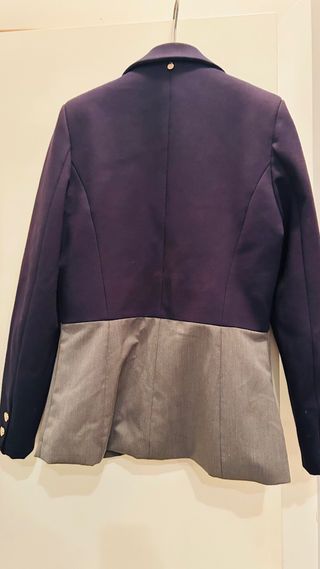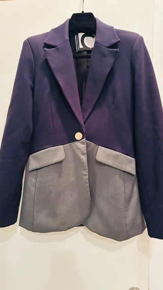 Chaqueta de diseño moderno con contraste de colores. - Parte superior en color azul. - Parte inferior y bolsillos en color gris. - Cierre de un botón dorado. - Cuello solapa clásico.