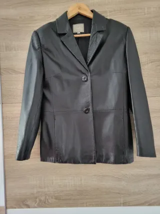 Elegante chaqueta de cuero negra, perfecta para cualquier ocasión. - Cierre de dos botones. - Cuello solapa clásico. - Diseño entallado. En perfecto estado. Vintage. Tiene signos de uso pero en perfecto estado. Chaqueta de calidad