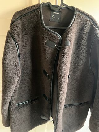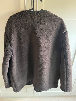 Chaqueta de borrego con detalles en polipiel. Poco uso. - Cierre con botón y ojal. - Bolsillos frontales. - Ribetes en contraste.