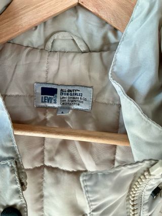 Chaqueta acolchada de la marca Levi's, en color beige y talla L. SI TE GUSTA 👉 HAZME UNA OFERTA RAZONABLE Chaqueta Levi's original para mujer, en muy buen estado, cuidada y sin desperfectos. Diseño cómodo y funcional, ideal para entretiempo y días fríos suaves. Color beige claro, muy fácil de combinar. Estilo casual y atemporal, perfecto para el día a día. ** Características: • V Marca: Levi's • V Prenda: chaqueta acolchada • V Talla: L (mujer) • V Color: beige / crema • V Capucha: desmontable • V Cierre: cremallera frontal + botones a presión • V Bolsillos: varios bolsillos exteriores con cremallera y solapa #levis #parka #mujer