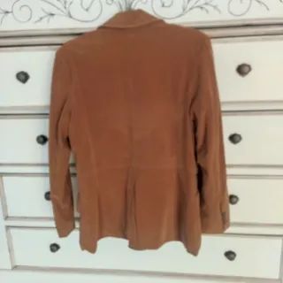 Elegante chaqueta de la marca Bettina Sanz.Ligera y cómoda, prenda de entretiempo forrada, cierra con dos botones, bolsillos laterales con solapa - Color marrón.Tacto melocotón. - Talla 38/40. - Medidas: De axila a axila: 48 cms Ancho de hombros: 43,5 cms Largo: 66,5 cms