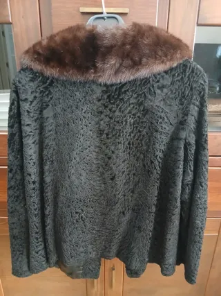 Elegante chaqueta de astracán con cuello de pelo. - Diseño clásico. - Cierre con botones. - Forro interior.