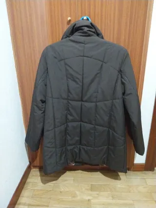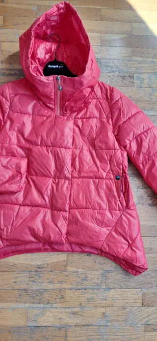 Cazadora acolchada con capucha. Relleno sintético. Talla M. Pecho 96cm Largo 60cm La cintura ajustable En buenas condiciones. - Cierre de cremallera parcial. - Diseño acolchado. - Detalle de cordón lateral.