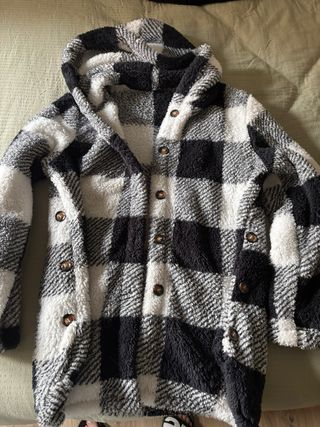 Conjunto de tres chaquetas de borreguito, nuevas a estrenar. Perfectas para un look cómodo y abrigado. - Diseño a cuadros en blanco y negro. - Tacto suave y cálido. - Cierre de botones.