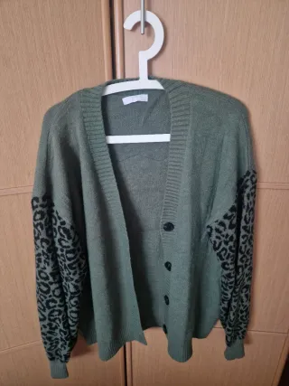 Chaqueta de punto con un diseño moderno y llamativo. - Mangas con estampado de leopardo. - Cierre de botones. - Cuello de pico.