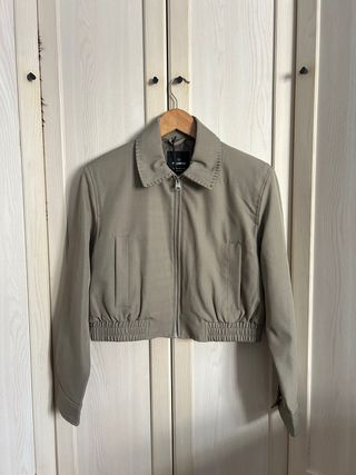 Cazadora ligera con capucha y cremallera frontal. Usada pero en buen estado - Bolsillos delanteros con solapa. - Puños y bajo ajustables con cordón. - Detalle de cinta negra en la cremallera.