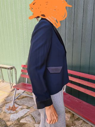Chaqueta tipo corte Smoking de Emporio Armani, talla 42 italiana (40 España), color negro, el lazo atrás es así, como cosido doblado, en perfectas condiciones.