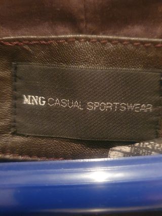 Chaqueta, corte tipo vaquera, 100% poliuretano, imita piel de serpiente, color burdeos oscuro, talla XL (una 42). En perfecto estado, a lo sumo 3 veces puesto (me ha quedado siempre pequeña).