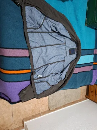Chaqueta vaquera de la marca RX, talla M. Está en buen estado, aunque presenta un ligero desgaste en algunas zonas que le dan un toque vintage. - Tiene un cuello de piel sintética marrón. - Cremalleras en los bolsillos. - Diseño estilo casual.