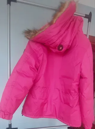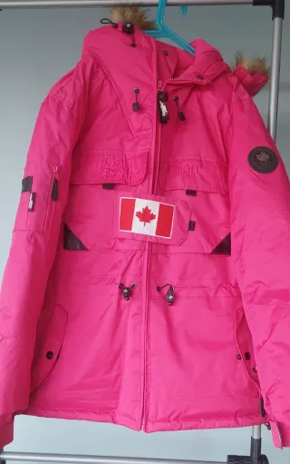 Parka, diseñada para proteger del viento y las bajas temperaturas, más larga que una chaqueta convencional y rellena con material sintético o plumón para retener el calor. Detalles visibles: Logotipo de la marca bordado en el pecho, que incluye la bandera canadiense. Apertura central con cremallera y solapa. Capucha con ribete de pelo sintético desmontable. Múltiples bolsillos frontales con solapa. Cintura y puños ajustables con cordones o correas. La vendo porque la compré el año pasado y ahora no me vale. Me costó 125 eur el año pasado. Tiene solo una puesta