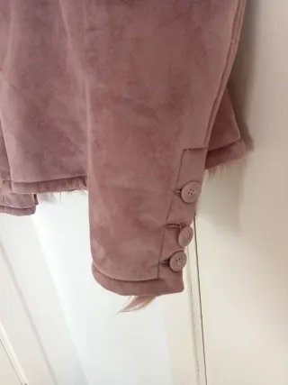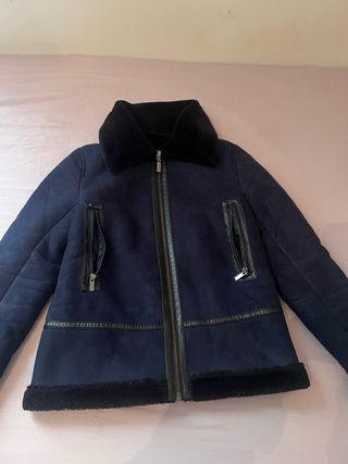Chaqueta efecto ante en tono marrón. Es talla XS, aunque talla grande. Es nueva. - Material tipo ante. - Dos bolsillos frontales con solapa y botón. - Cierre de botones a presión. - Puños y cintura elásticos. - Cuello camisero.