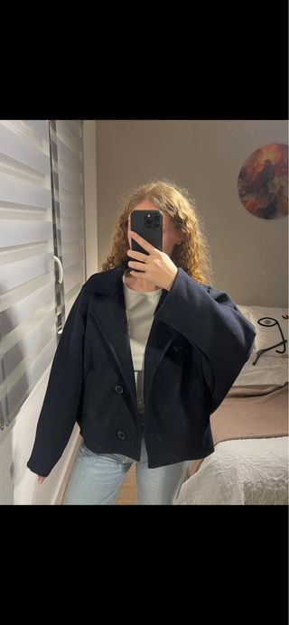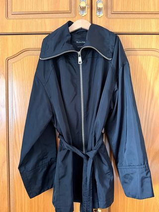 Chaqueta elegante de Massimo Dutti. - Diseño moderno con cuello alto y cremallera. - Cinturón para ajustar la cintura. - Mangas amplias con detalle en los puños.