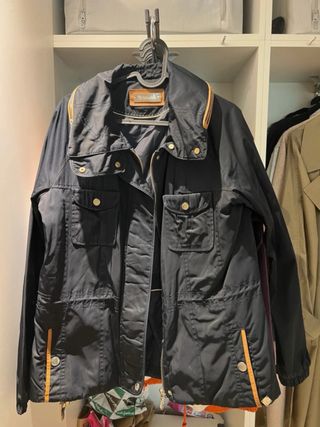 Chaqueta de la marca Massimo Dutti en color negro. Cuenta con un diseño moderno y detalles que la hacen única. - Capucha integrada. - Cierre de cremallera. - Bolsillos frontales con solapa. - Ribetes en contraste.