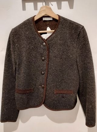 Chaqueta Burberrys vintage 100% auténtica, fabricada antes de 1999, artículo de colección. Confeccionada en pura lana y alpaca, con el forro interior clásico Nova Check, tono marrón oscuro, con ribetes de cuero marrón y botones a juego, cuello en V, bolsillos delanteros, talla S, en muy buenas condiciones. Se puede enviar o recoger en Tienda Solidaria Piel de Mariposa BARCELONA C/ Torrent de l'olla 100 (+ info en la última foto)