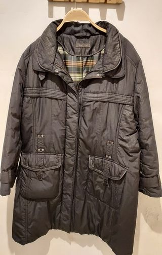 Chaqueta acolchada de la marca Buccino en color negro. Presenta un diseño moderno y funcional. Cuello alto con cierre de cremallera. Bolsillos frontales con solapa y botón. Puños ajustables. Forro interior a cuadros. Talla 50 según etiqueta. Se puede enviar o recoger en Tienda Solidaria Piel de Mariposa BARCELONA C/ Torrent de l'olla 100 (+ info en la última foto)