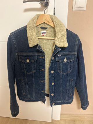 Chaqueta vaquera de Tommy Jeans con forro interior de borrego. Es la talla M pero talla pequeña