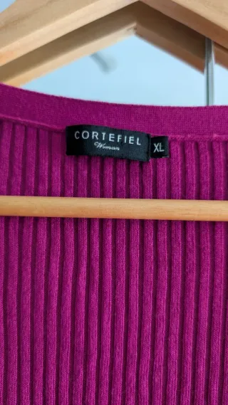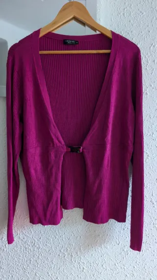 Chaqueta de punto con un bonito color morado. - Diseño abierto. - Cierre con detalle metálico. - Tejido acanalado.