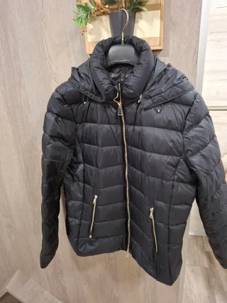 Producto original. Lleva etiquetas y adornos de la marca que lo demuestran. Interior de fibra. No es pluma. Corte ajustado y cómodo. Queda muy bonita. Medidas: Axila 44 cm cadera 45 cm Hombros 40 cm Largo Manga 63 cm Largo Total 70 cm