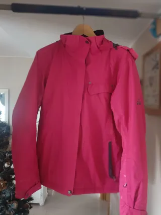 Chaqueta de nieve para mujer, ideal para actividades al aire libre. - Diseño moderno y funcional. - Cierre frontal con cremallera y botones. - Bolsillos laterales con cremallera para forfait - Capucha ajustable. - Puños con ajuste de velcro. - Talla 40-42