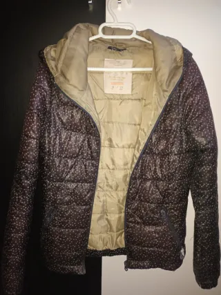 Preciosa chaqueta beige de señora. Talla S de la marca Zara. De mucho abrigo pero muy ligero: 80% plumón y 20% plumas. Tiene 2 bolsillos frontales y otro interior. En perfecto estado .Puesto 2 días. Venta en persona o con envio.