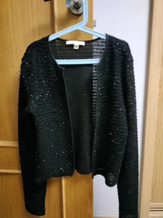 Chaqueta de punto con detalles brillantes. - Diseño abierto. - Manga larga. - Tejido texturizado.