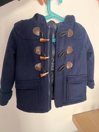 Chaqueta de paño para niño de la marca Guess. Diseño clásico con detalles de polipiel y botones de madera. - Cierre de cremallera. - Bolsillos delanteros. - Capucha. - Puños enrollados.