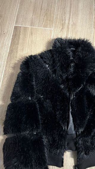 Chaqueta corta de pelo sintético. - Diseño moderno y llamativo. - Cremallera frontal. - Puños y bajo elásticos.