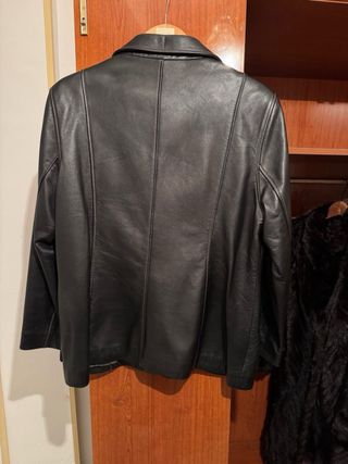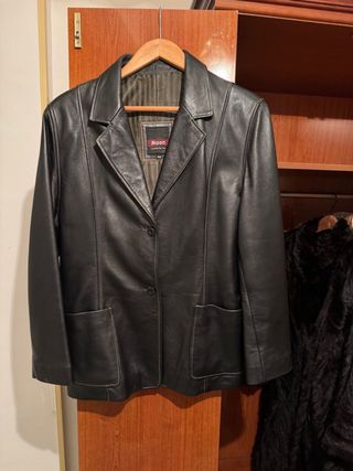 Chaqueta de cuero de la marca Moon. - Diseño clásico con cuello - Cierre de dos botones - Dos bolsillos frontales con solapa