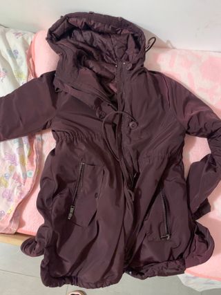 Chaqueta versátil y práctica. Sirve como chaqueta normal, para embarazo (abriendo las cremalleras laterales) o para portear a tu bebé en la mochila poniéndole la extensión en el centro con las cremalleras. Muy fácil de poner. Con muy poco uso. Ideal para el frio. También tengo una mochila de porteo ergobaby, puedes mirar en mi perfil. Talla M.