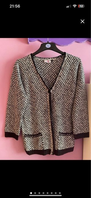 Chaqueta de punto cómoda y elegante, perfecta para el embarazo. Su diseño versátil la hace ideal para cualquier ocasión. - Cuello ancho de canalé. - Cierre de botones. - Tejido de punto grueso.