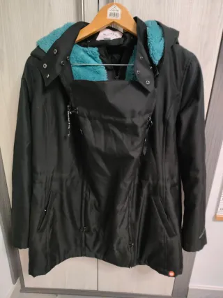Abrigo diseñado para embarazo y lactancia. Se puede ampliar a medida que va creciendo la barriga. Tiene otra pieza para añadir y llevar porteando al bebé después. Es muy calentito y está en perfecto estado - Capucha con pelo. - Bolsillos frontales con solapa. - Cierre de cremallera y corchetes.